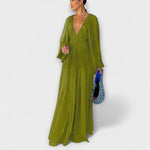 Evka ™ |Elegantné plisované šaty s dlhým rukávom