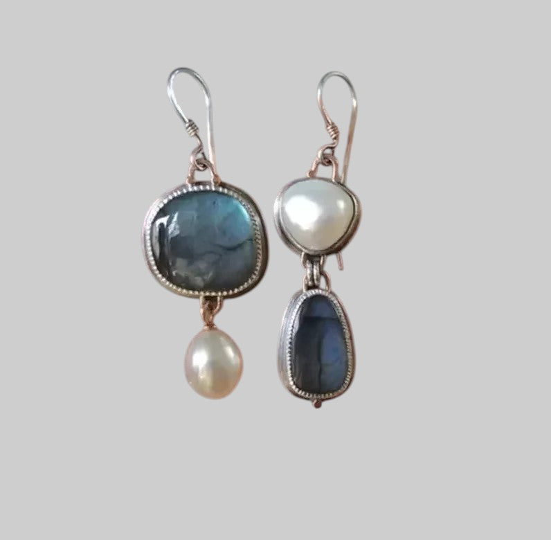 EDITA | VINTAGE NÁUŠNICE S MODRÝM KAMEŇOM A PERLOU