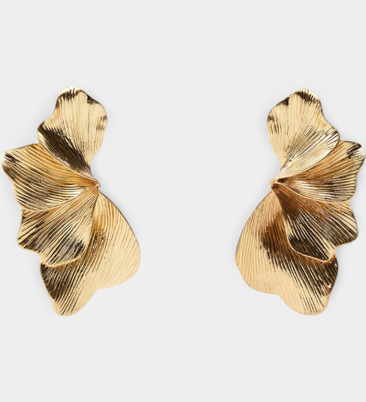NÁUŠNICE VISIACE S LISTOM Z TEXTÚROVANÉHO KOVU