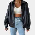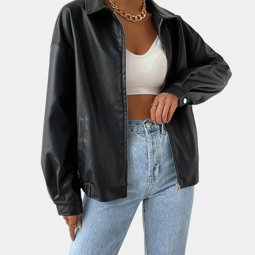 Minimalistická bunda z ekokože s moderným vzhľadom