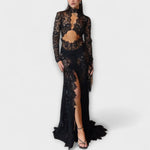 Azalea ™ |Polnočná elegancia transparentné vykrojené dlhé šaty s elastanom