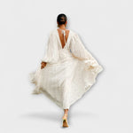 Urobte dojem s krémovými maxi-šatami Allegory Elsa!