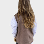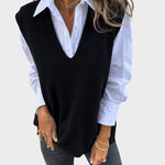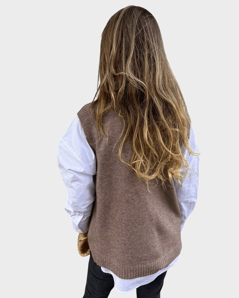 Táto pletená vesta bez rukávov je dokonalou voľbou pre ženy, ktoré si cenia jednoduchý, no sofistikovaný štýl. Moderný strih zvýrazňuje postavu a ľahko sa kombinuje s košeľami, blúzkami či tričkami, čím vytvára elegantný vzhľad na každú príležitosť. Mäkká, ľahká a príjemná na dotyk, poskytuje pohodlie po celý deň a dodáva každému outfitu nádych elegancie.