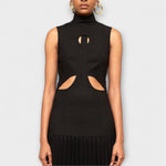 Odvážne a rafinované, tieto ohromujúce maxi šaty sa vyznačujú výraznou siluetou, ktorá zaručene pritiahne pohľady. Detailovanie s kľúčovým výstrihom na prednej strane a so sochárskym výstrihom v páse kombinuje štruktúrovanú eleganciu s lichotivými dizajnovými prvkami.